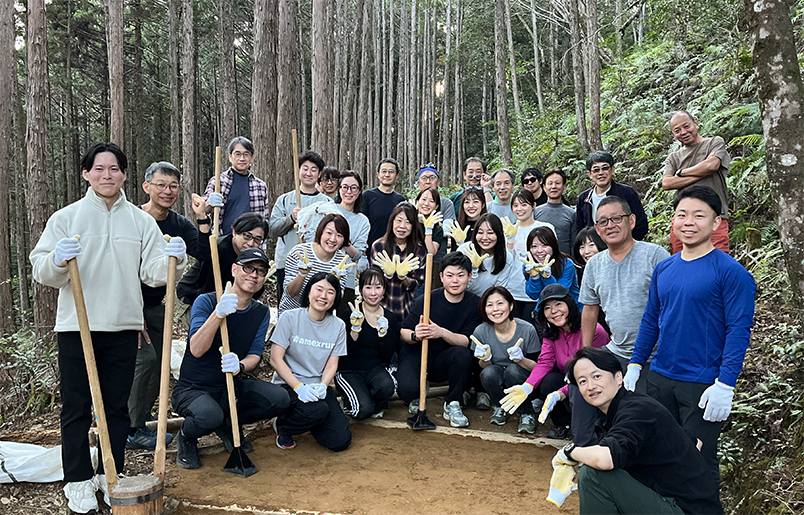 In Wakayama Prefecture, home to the World Heritage site "Kumano Kodo," maintenance and conservation activities for the ancient trails are continuously conducted through the "Michi-Bushin Walk" program, in which companies and organizations participate. Since our founding family has ties to Wakayama Prefecture, employees participated in FY2025 as well, contributing to the conservation of cultural heritage through cleanup work and path maintenance.