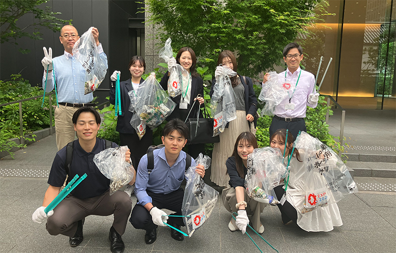 We continuously conduct cleanup activities around the Osaka Head Office by employees every year. We work on environmental maintenance of sidewalks, planting strips, and surrounding facilities, contributing to the creation of a safe and comfortable environment in the region.